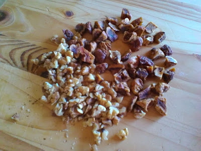 Tagliate a pezzetti noci e fichi.