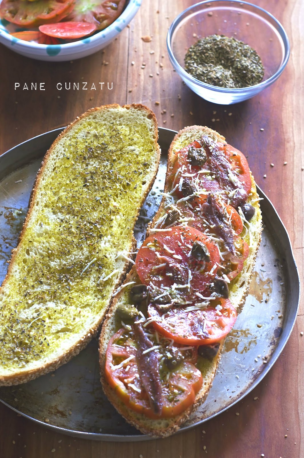 Il pane cunzato ovvero pane condito è un pane casereccio che veniva preparato inizialmente con pochi e poveri ingredienti come pomodoro, primo sale siciliano, origano e il tutto irrorato con abbondante olio.