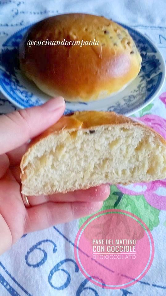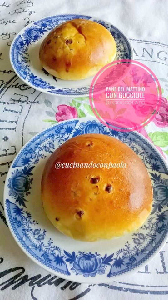 Lasciateli lievitare ancora per un’oretta nel forno spento. Ora cuocete il Pan del mattino con gocce di cioccolato nel forno preriscaldato a 180°C per 20 minuti circa finché la superficie diventerà leggermente dorata. Buona colazione e merenda a tutti!