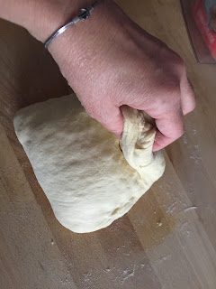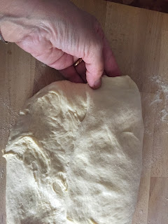 Riprendere l’impasto e versarlo sulla spianatoia leggermente infarinata con farina di semola,