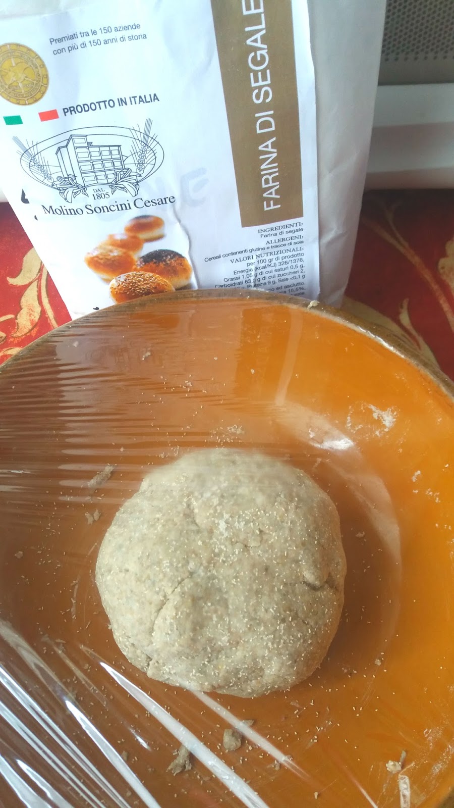 Sciogliere il lievito in poca acqua con miele,aggiungervi 50g di farina di segale e formare