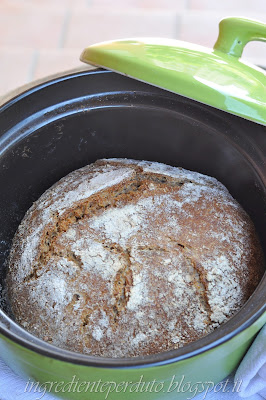 realizzazione il pane utilizzando quello che è conosciuto come il metodo di Jim Lahey , il famoso pane no-knead che prevede una maturazione dell’impasto di 16-18 ore; ed ho sostituito il forno a legna con la pentola.