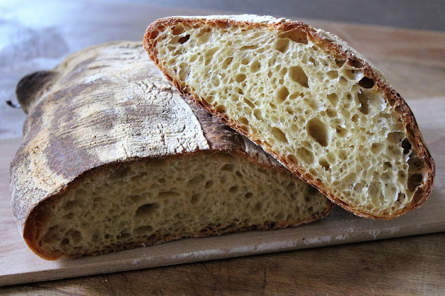 Setacciare la farina nella planetaria, aggiungete il lievito, il malto ed un poco di acqua, cominciate ad impastare con il gancio e successivamente aggiungete il resto dell’acqua un pò alla volta. Aggiunte il sale e continuate ad impastare. La fase d’impasto dura 20 minuti. Coprite la ciotola e riponete in frigo per tutta la notte. La mattina riprendete l’impasto lasciatelo fuori dal frigo per circa 1/2 ora, stendete l’impasto sopra una spianatoia cosparsa di semola, con la pasta formate un rettangolo e arrotolatelo su se stesso a formare un filone. Trasferite l’impasto in una ciotola rivestita da un canovaccio e spolverata di semola; lasciare lievitare per 4 – 5 ore. Preriscaldate il forno a 250° C con all’interno già pronta la teglia sulla quale sarà appoggiato il filone lievitato. Dopo 1/2 ora abbassate il forno a 200° C e continuate la cottura per 1/4 d’ora e l’ultimo 1/4 d’ora con lo sportello del forno leggermente aperto.