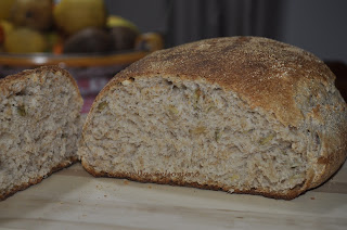 Mettete a lievitare in un cestino rivestito con un canovaccio. Coprite e aspettate che raddoppi. Il mio ci ha messo 7 ore. Infornate a 200° mettendo nel forno un pentolino di acqua bollente. Fate cuocere per 45 minuti circa.