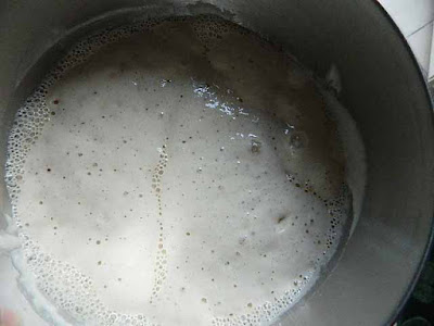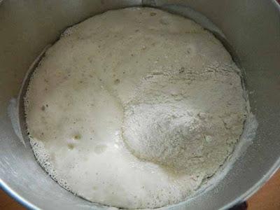 Coprire la ciotola con la pellicola e lasciare a temperatura ambiente per tutta la notte. La mattina dopo riprendere l’impasto che sarà bello gonfio e alveolato