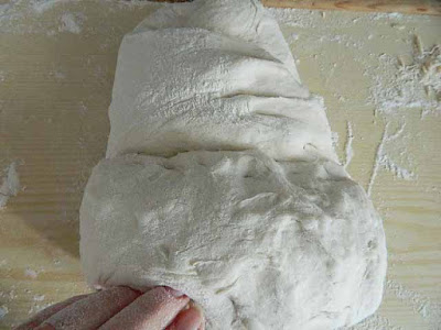e fare due pieghe a portafoglio spolverizzando sempre il piano con la farina,