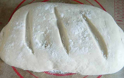 A questo punto con l’impasto formare un filoncino o due a secondo della grandezza che si preferisce e, con le mani infarinate li sistemiamo nella teglia foderata con la carta da forno, li modelliamo dandogli la classica forma allungata, con un coltello affilato fare dei tagli sulla superficie e spolverizzare con la farina.