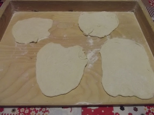 Lasciatelo riposare qualche minuto, poi dividetelo in tante palline quante sfoglie volete fare (per me 4), stendetele molto sottili ( io le ho fatte a forma molto irregolare), quindi scaldate la padella antiaderente, mettete una sfoglia alla volta, fatela cuocere qualche minuto per parte, poi servite accompagnato da formaggi e salumi e buon appetito!!!