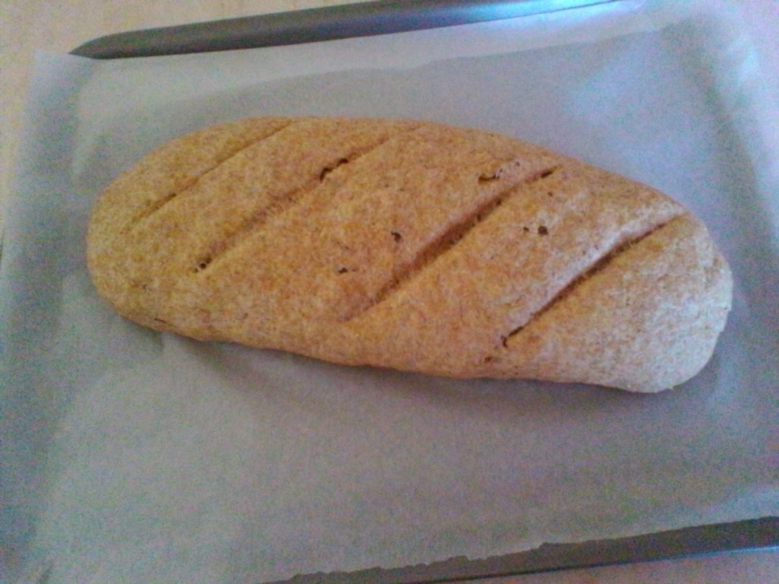 Incidete la superficie del pane con un coltello affilato e mettetelo nel forno preriscaldato a 220 per circa 40 minuti. Spegnete il forno quando la crosta avrà un bel colore bruno. Una volta sfornato fatelo raffreddare su una griglia prima di tagliarlo a fette.