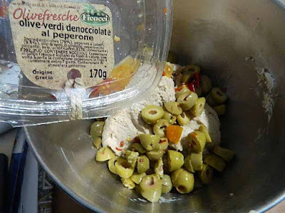 che avremo spezzettato in modo grossolano, incorporare le olive all’impasto