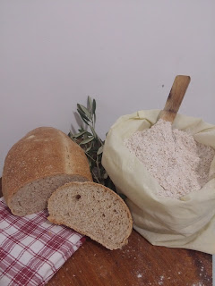 150 g di farina integrale; 150 g di farina 0; 100 g di lievito madre; 150 ml di acqua tiepida; 1 cucchiaio raso di sale; 1/2 cucchiaino di zucchero; 1 cucchiaio di olio evo