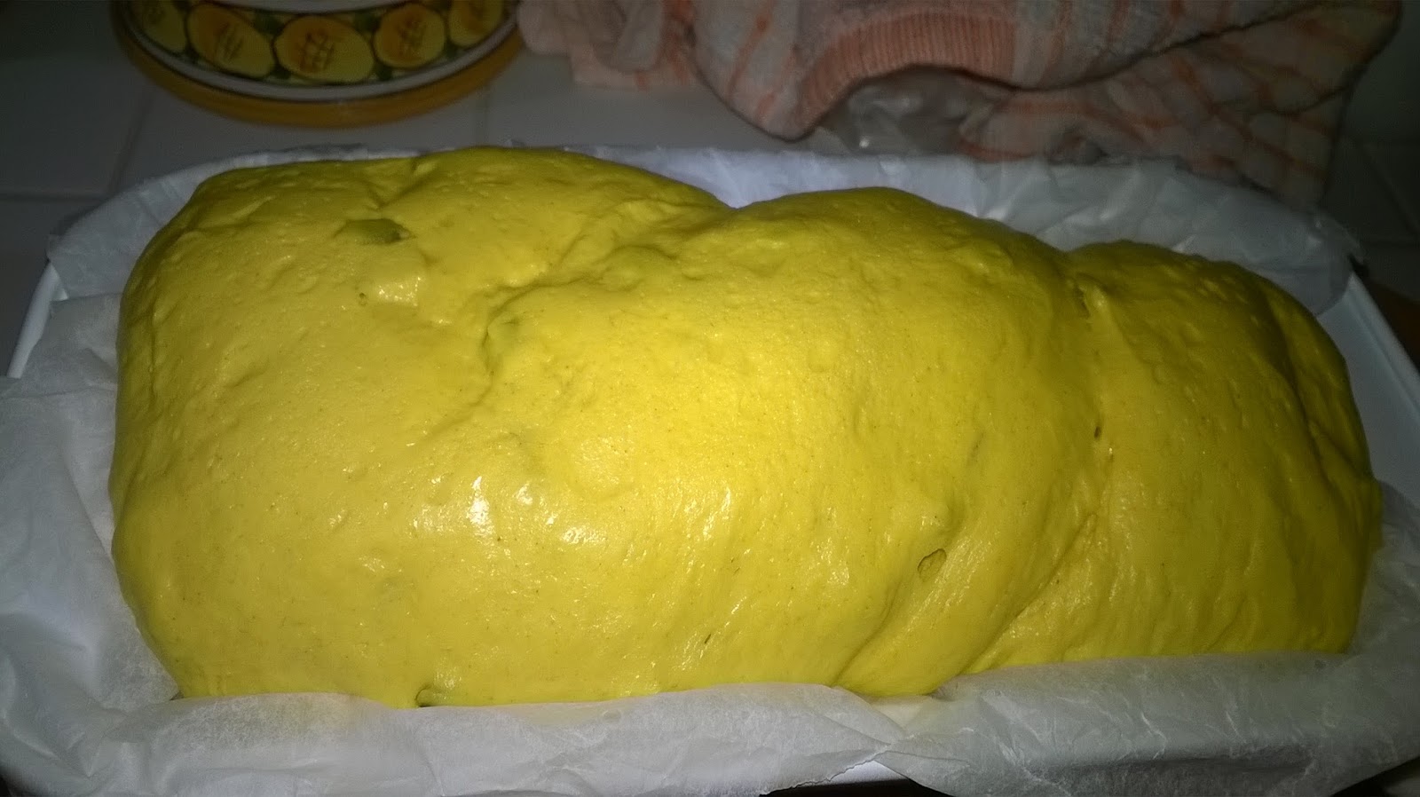 Formate un cordone, attorcigliatelo e sistematelo in uno stampo da plumcake rivestito di carta da forno. Fate lievitare fino a che raddoppia coperto con una pellicola. Il tempo dipenderà dalla temperatura esterna. Mettetelo dentro il forno con la lampadina accesa perchè non subisca sbalzi di temperatura. Quando avrà raggiunto il volume giusto infornate a 200° per 30/40 minuti.