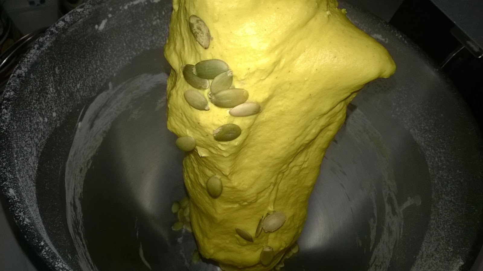 Fate impastare bene nella planetaria con il gancio; l’impasto dovrà essere morbido ma elastico. Alla fine aggiungete 50 g di semi di zucca.