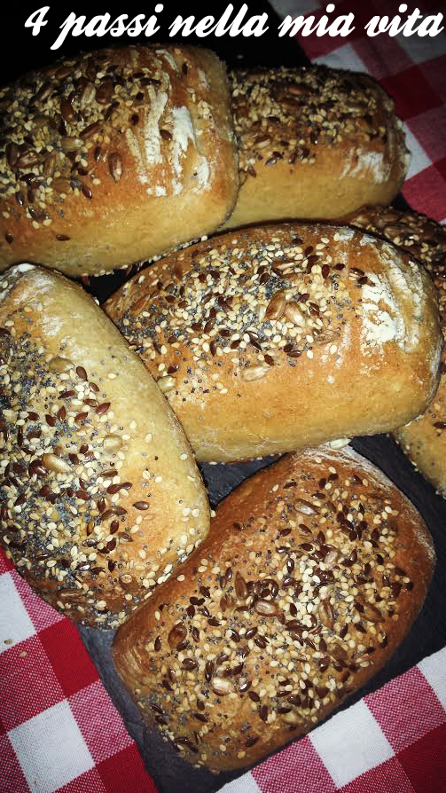Nello specifico si tratta di panini semi-integrali arricchiti da un misto di semi (zucca, papavero, girasole, sesamo) che li rendono rustici, leggeri e molto digeribili.