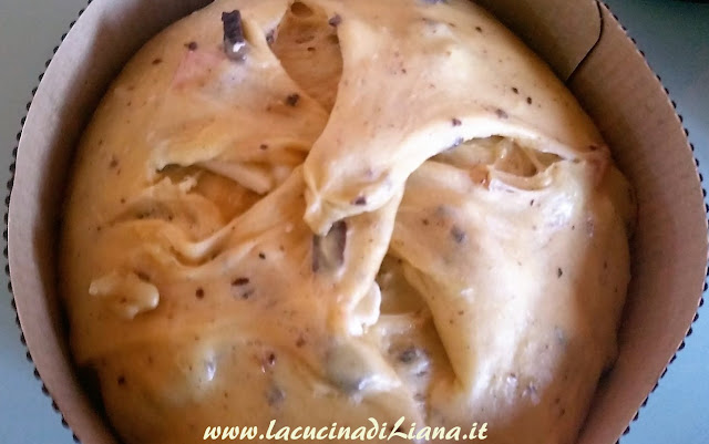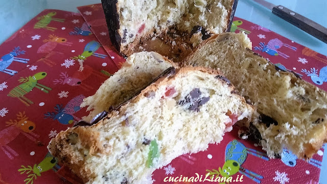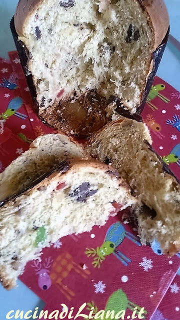 Questa versione è con Pere candite al posto dell’Uvetta e Cioccolato extrafondente e Noci al posto dei canditi. La ricetta del Panettone è quella del maestro Rolando Morandin fatta con il licoli, alla quale poi ho modificato le sospensioni, mantenendo la dose totale.