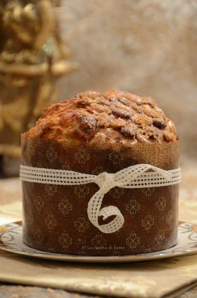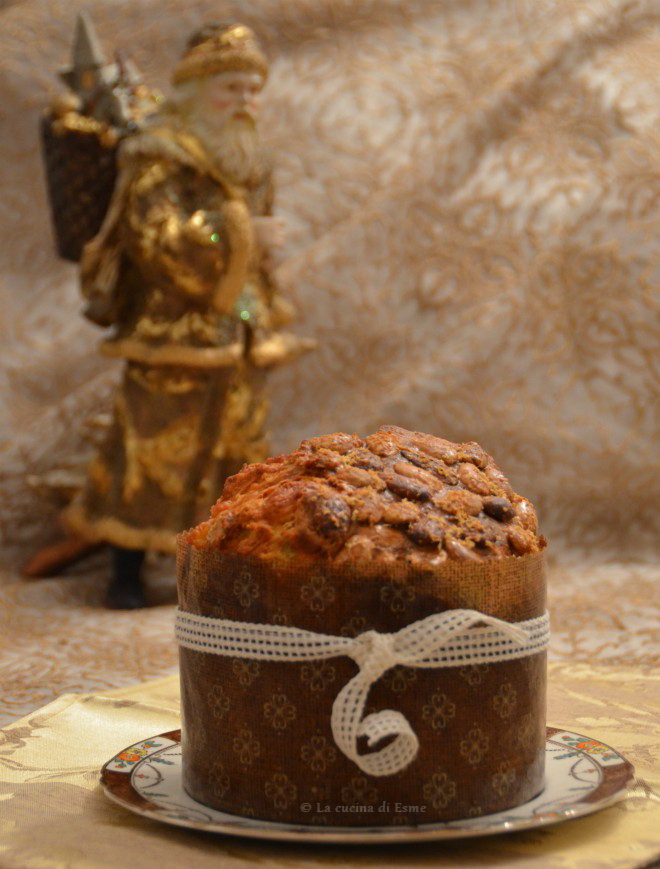 Che periodo! Non capisco per quale motivo, ma anche se dico sempre di fare le cose con calma ed organizzarmi prima, il mese di dicembre mi arriva addosso come uno tsunami e mi travolge di mille impegni. Un attimo prima, mi sembra di avere tantissimo tempo a disposizione, un attimo dopo, è già tardissimo !!! Il problema, forse, è che la mia vita quotidiana è già di suo pienissima … se poi aggiungiamo i regali d’acquistare, la spesa da organizzare, le prove culinarie da fare, il traffico romano totalmente impazzito … ecco che il blog ci rimette e di conseguenza chi di voi passa per prendere uno spunto o un’idea per la cena della vigilia o il pranzo di Natale, rischia di rimanere deluso. Quindi, accettate le mie scuse, e vi prego comprendetemi! Ma secondo voi se chiedessi a Babbo Natale un regalo anticipato, tipo le ferie natalizie … prima di Natale, sarei accontentata? Non credete che sarebbe bellissimo? Avrei tempo per dedicarmi tranquillamente ai preparativi, tempo per biscottare, provare nuovi dolci, o magari finalmente sfornare un panettone! Ma anche per questo Natale niente grandi lievitati home made in casa mia, però quest’anno ho provato a fare il tradizionale panettone … in versione salata. Una vera chicca, super facile, super veloce e super gustosa! Il panettone salato, che nulla ha a che fare con il classico panettone “gastronomico” da imbottire, è un rustico perfetto da portare in tavola nelle festività natalizie, tra gli antipasti o su un buffet. Simile nella forma al classico panettone dolce, stupirà i vostri ospiti con la sua farcitura di salumi e formaggi! Mi dispiace di non avervi potuto fotografare la fetta, ma l’ho portato sabato sera ad una cena di auguri natalizi tra amici …