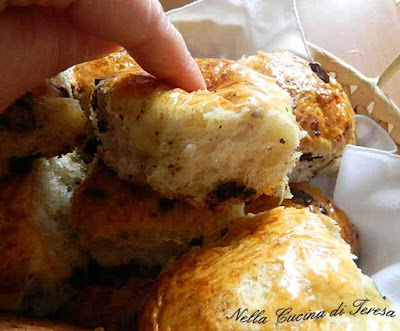 I Pangoccioli sono quei morbidissimi panini con gocce di cioccolato fondente che si mangiano a colazione e che piacciono a grandi e piccini. Di ricette dei Pangoccioli in rete ve ne sono tante, bè io ho guardato un pò qui un pò là e ho provato, come al solito, a fare a modo mio. Esperimento riuscitissimo , panini morbidi e buonissimi, solo un accorgimento come tutte le cose fatte in casa rimangono morbidi e freschi per un paio di giorni in buste di plastica ma, se ne fate troppi non preoccupatevi potete congelarli e li avrete sempre morbidi al bisogno.
