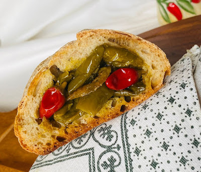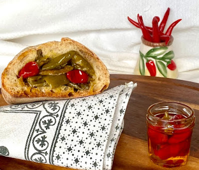 Per tradizione familiare il mio salaturi comprende pomodori verdi, peperoni riggitani, cipolle, melanzane e rametti di finocchietto selvatico.