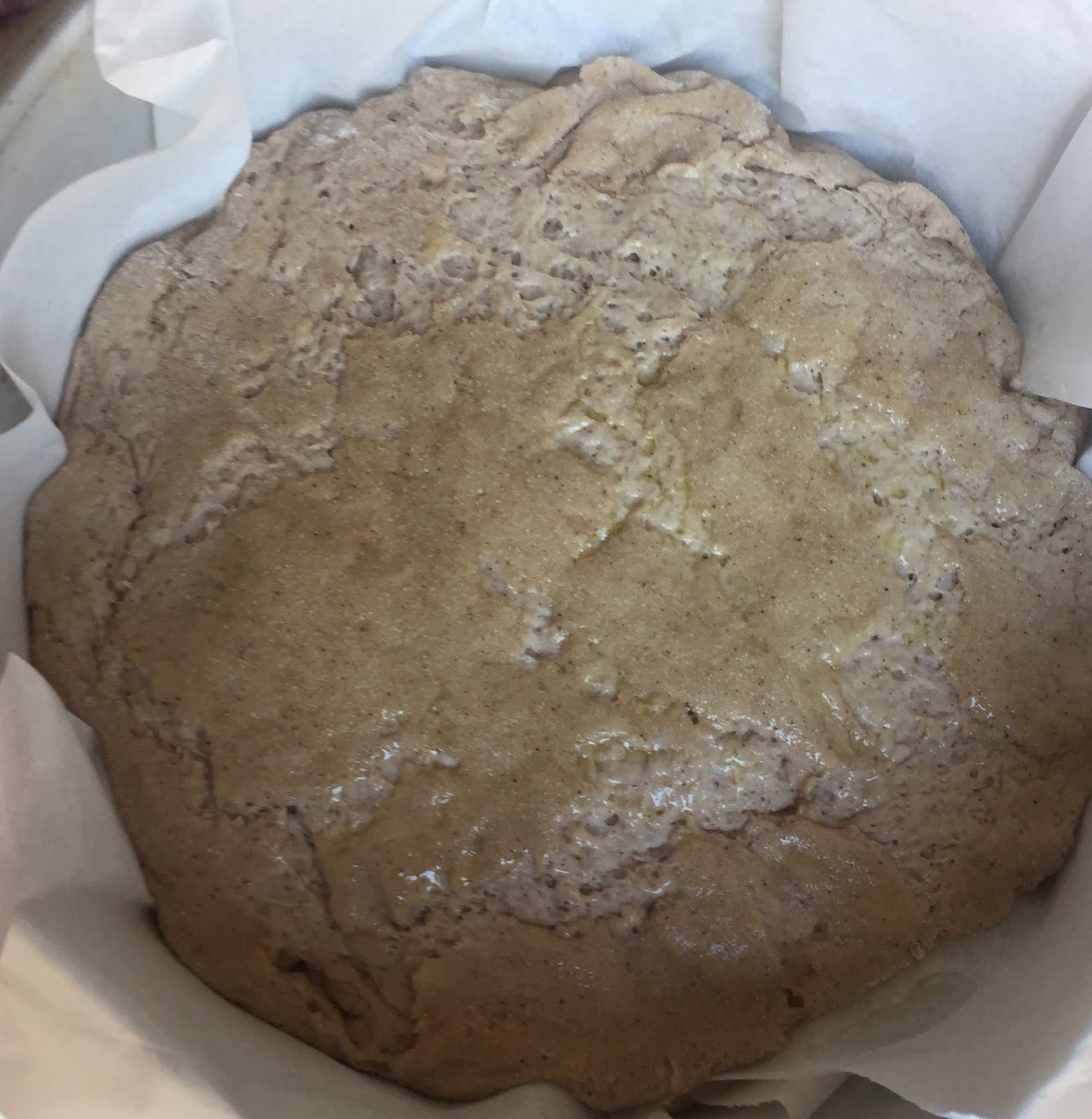 Trascorso il tempo rovesciate la pagnotta su una teglia, spalmatela d’olio evo e infornate in forno caldo a 220°. Dopo 10 minuti abbassate a 180° e fate cuocere per 20/25 minuti. Trascorso questo tempo spegnete il forno e lasciate che il pane si raffreddi in posizione verticale.