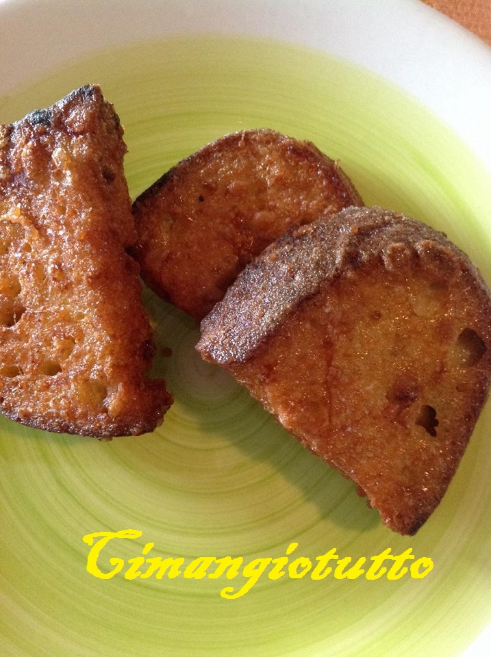 Questo è un piatto di riciclo che mi preparava mia madre quando ero piccola. Va da sé che io lo ripropongo a mia figlia. Nasce per l’esigenza di evitare di buttare il pane raffermo. Tra l’altro ho scoperto che in alcuni paesi della Sardegna si trasforma in un piatto dolce con l’aggiunta, dopo la frittura, dello zucchero. In casa mia, invece, si faceva solo la versione salata. Alcuni aggiungono anche il latte alle uova.