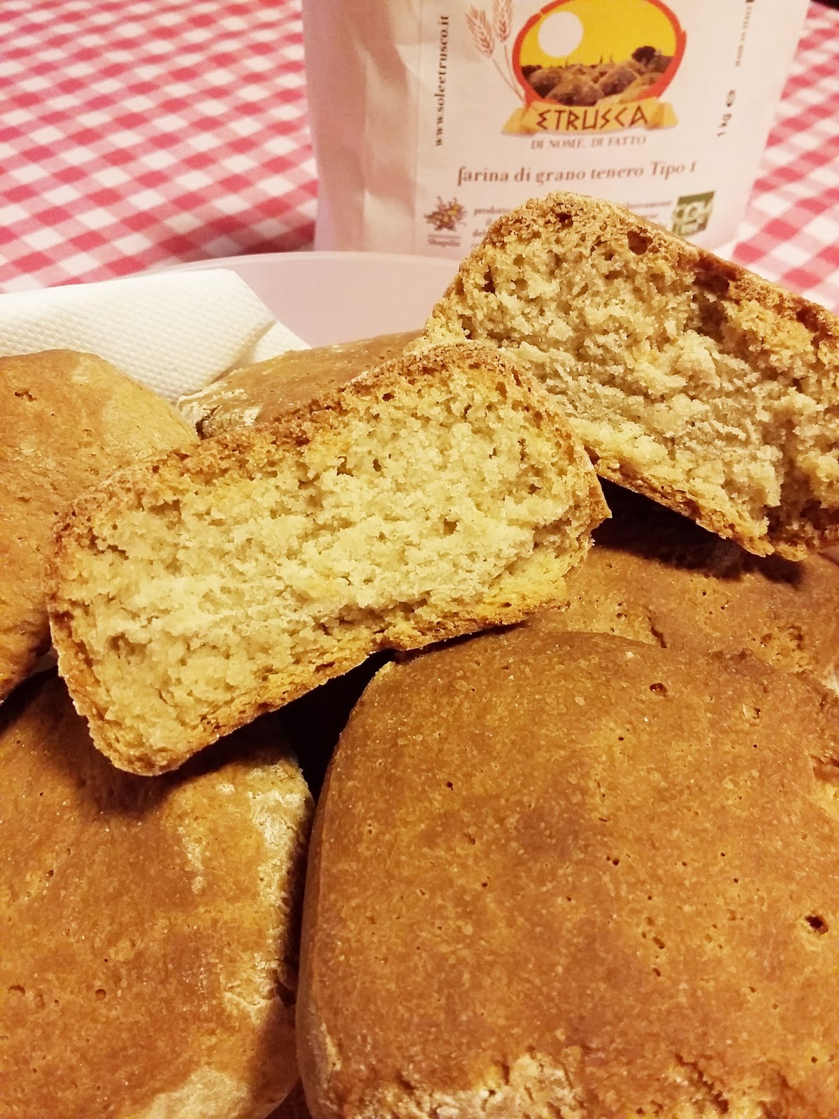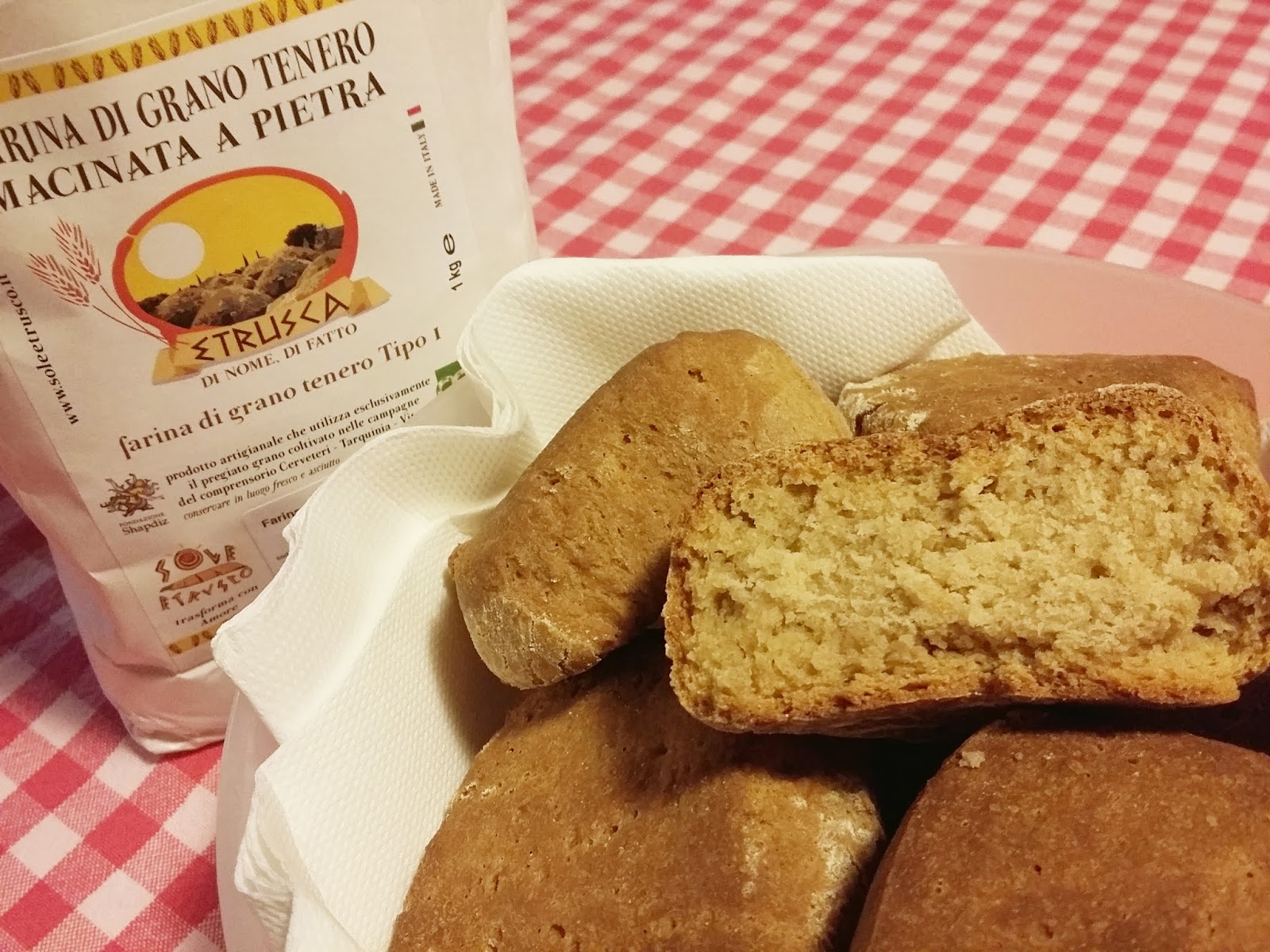 Quando Cibo et Vino Shop mi ha affidato la farina di grano tenero tipo 1 di Sole Estrusco, profumata e dal colore intenso, ho subito pensato di mescolarla con qualcosa di candido: ricotta fresca, ed un tocco di farina di riso. Ne sono nati dei panini piccoli ma di grande aroma, dorati, croccanti fuori come piacciono a me ma anche pieni di tenera mollica all’interno.