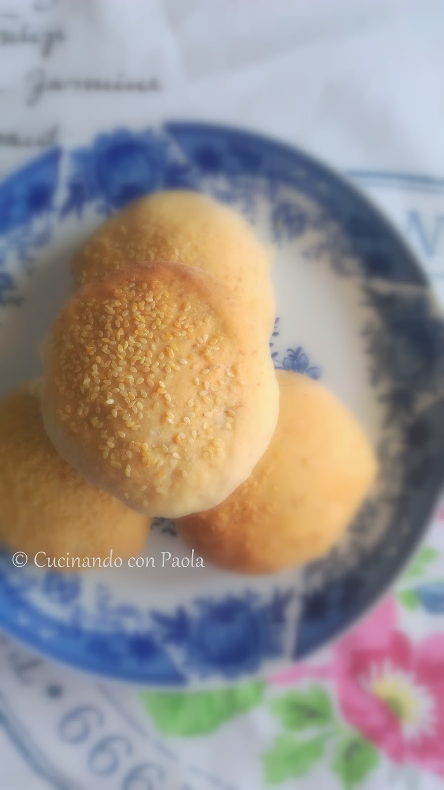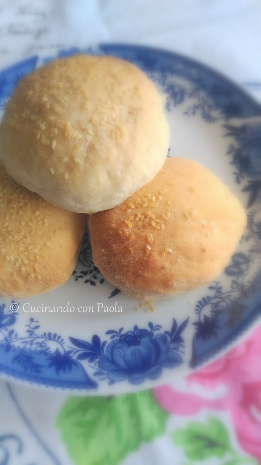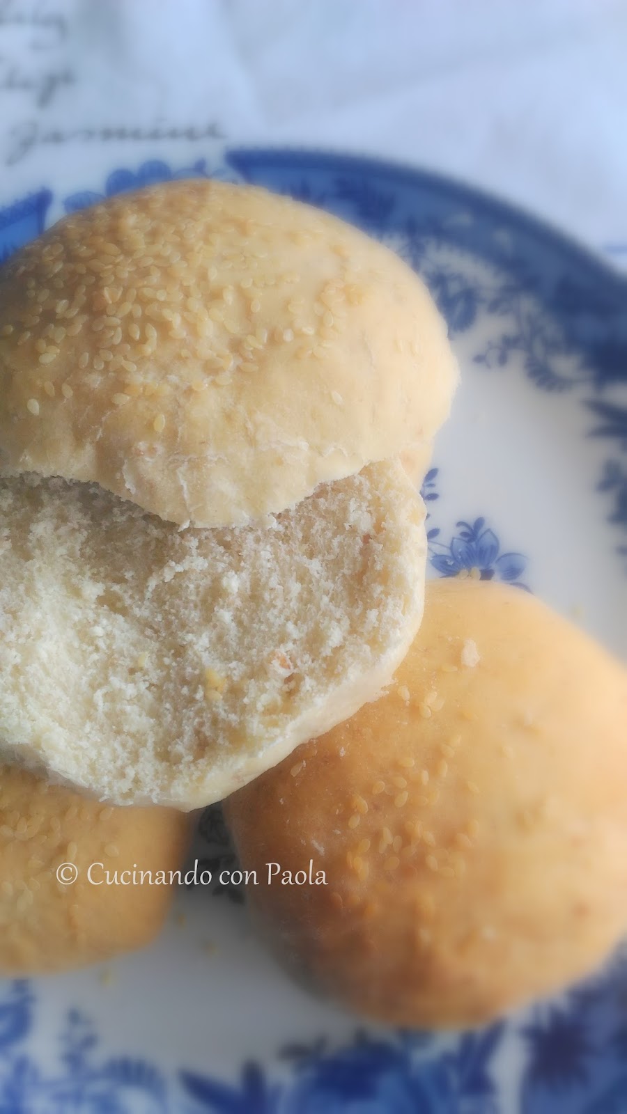 Impastare energicamente a mano per almeno 10 minuti. Se l’impasto appiccica, lavare e oliare le mani. Formate i panini e lasciar lievitare per 120-180 minuti su una teglia, precedentemente oliata, all’interno del forno spento. Estrarre la teglia, inserire all’interno del forno un pentolino di acqua e portare alla temperatura di 220°C. Cuocere per 20-30 minuti circa.