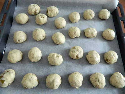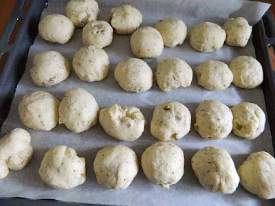 formare tante palline e metterle man mano sulla piastra da forno ricoperta di carta e lasciare lievitare ancora per un’ora.