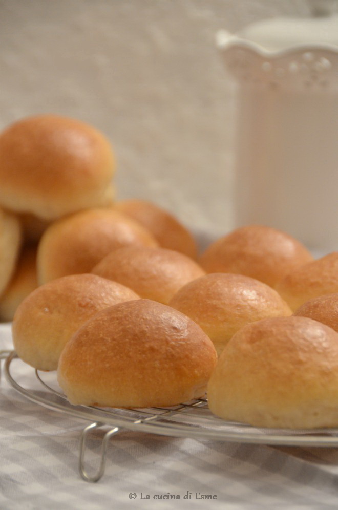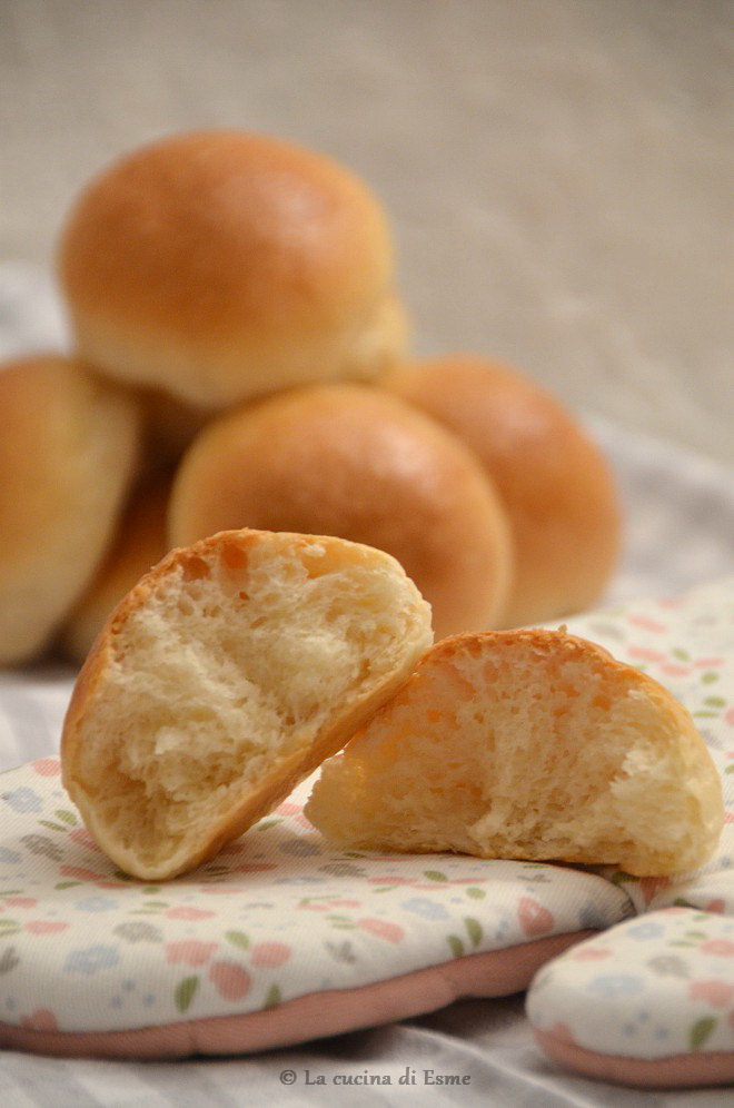 Il rosso dei tramonti, lo scricchiolio delle foglie sotto i piedi, il profumo delle castagne arrostite, il ritorno della mia amata zucca … tutto questo è l’autunno. Non è certo ancora tempo di maglioni, o di stringersi in un caldo cappotto, ancora non è il momento di cioccolata calda, ma le temperature sono diminuite e finalmente possiamo riaccendere il forno! Le lunghe preparazioni forzatamente abbandonate durante la bella stagione, possono finalmente ritornare a padroneggiare nelle nostre cucine. Per quanto mi riguarda, non appena la temperatura diminuisce, il mio primo desiderio è quello di rimettere le mani in pasta e ricominciare a sfornare i miei amati lievitati. L’impasto di questi panini è sofficissimo, inoltre è perfetto per gli intolleranti al lattosio, una pasta brioche dal sapore neutro che vi regalerà dei panini versatilissimi, ottimi sia farciti in versione dolce sia in versione salata.