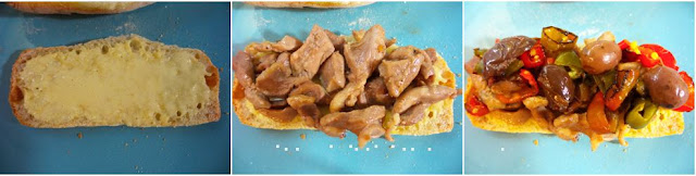Iniziamo a comporre il nostro panino stendendo un velo di maionese alla base quindi mettiamo il tacchino e completiamo con i friggitelli e due olive snocciolate al momento.