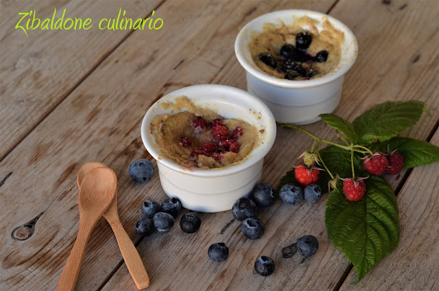 Versarlo nelle coppette. A questo punto aggiungere i frutti di bosco e una spolverata di zucchero di canna (a piacere, la quantità non è nella lista degli ingredienti).