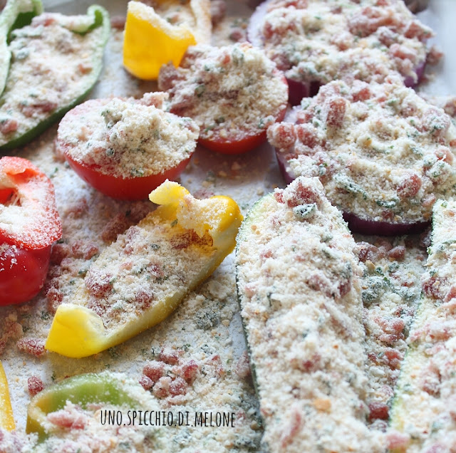 Se vi dovesse capitare di vedere la panure più cotta rispetto alle verdure, allora vi consiglio di coprire la teglia con le verdure con un’altra teglia in modo da evitare le bruciature.