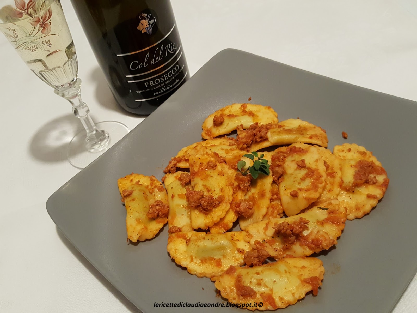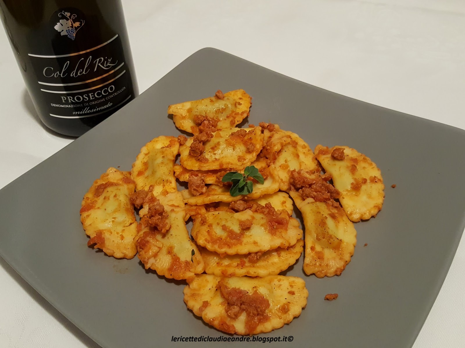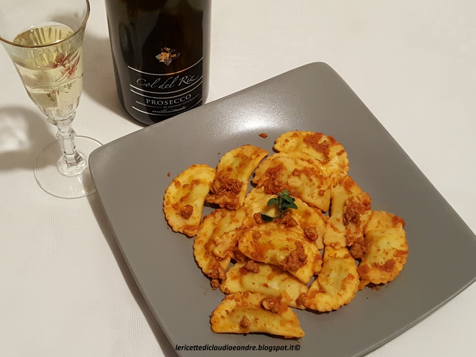 Questo è un piatto veloce, in quanto i panzerotti non li ho fatti in casa, ma li ho comprati. Il ragù l’ho fatto io in casa con la cottura lunga, circa 3,30 ore, comprando della carne di maiale e bovino, tritandola e preparando il ragù con cipolla, carota, sedano e tanta salsa di pomodoro fatta anche essa in casa. Solitamente ne faccio di più e l’ho metto nei baratoli per averlo nel momento del bisogno, non si sa mai se si ha voglia di una lasagna, per fare delle arancine o condire al ultimo un piatto di pasta. Ecco così è che questo piatto è avvenuto, avevo dei panzerotti comprati e con un click del baratolo, un buon piatto di pasta è venuto fuori. Per accompagnare un buon piatto di pasta ci voleva anche un buon vino, perciò, abbiamo optato per il Prosecco Col del Riz Millesimato D.O.C., un vino dal profumo elegante che riporta note fruttate di mela, pera e pesca bianca. Al gusto si presenta secco ed equilibrato. E’ ideale per accompagnare antipasti leggeri, pesce e verdure. Ottimo anche come aperitivo, ma anche per accompagnare questo piatto di panzerotti al ragù. Il vino ci è stato omaggiato dal Caseificio Brema che ringraziamo tanto.