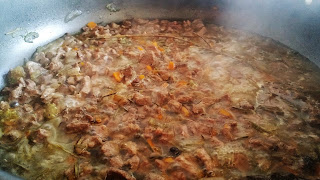 Cucinare per 1 ora e mezza circa (o comunque fino a che la carne non risulterà tenera) aggiungendo il brodo man mano che si esaurisce e cuocendo il tutto a bassa temperatura.