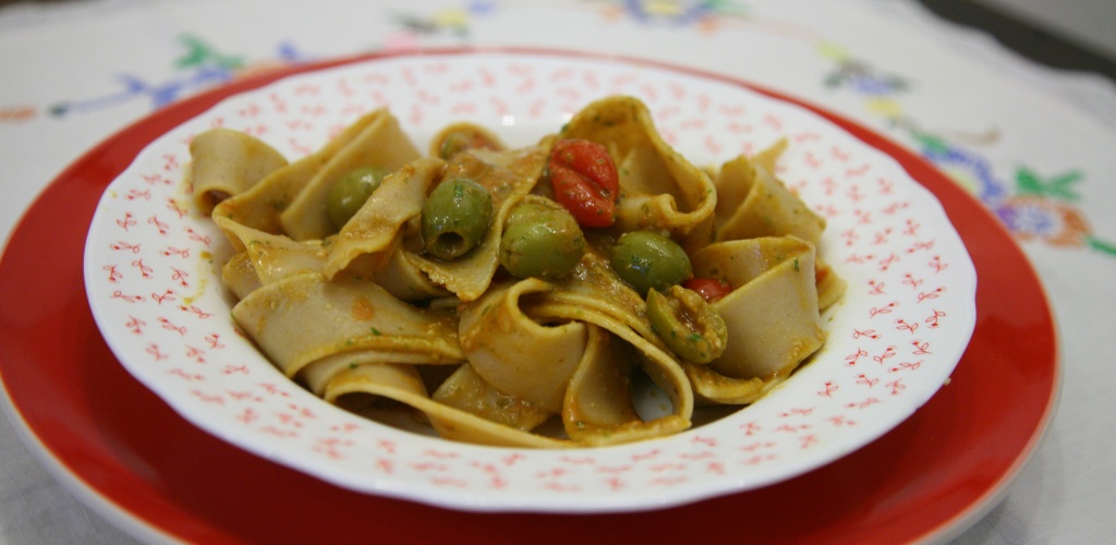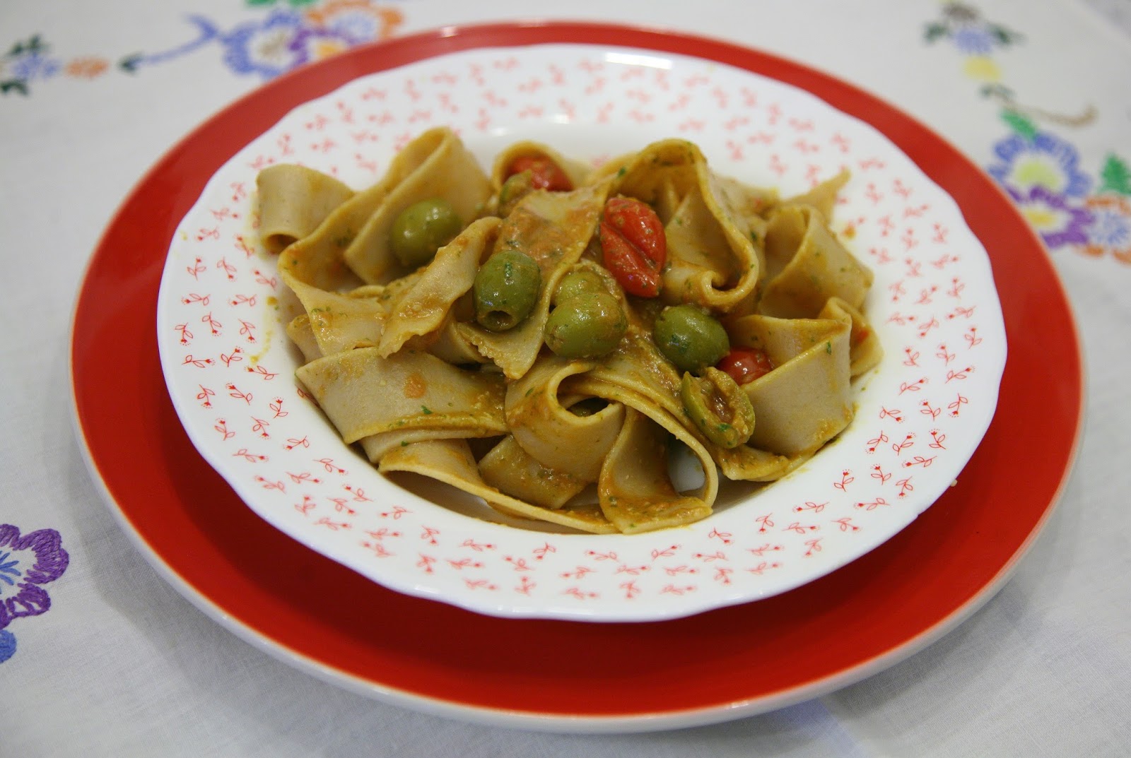 Queste pappardelle integrali sono veramente facili da fare, sono saporite e gustose grazie alle olive e gli anacardi presenti nella crema di basilico.