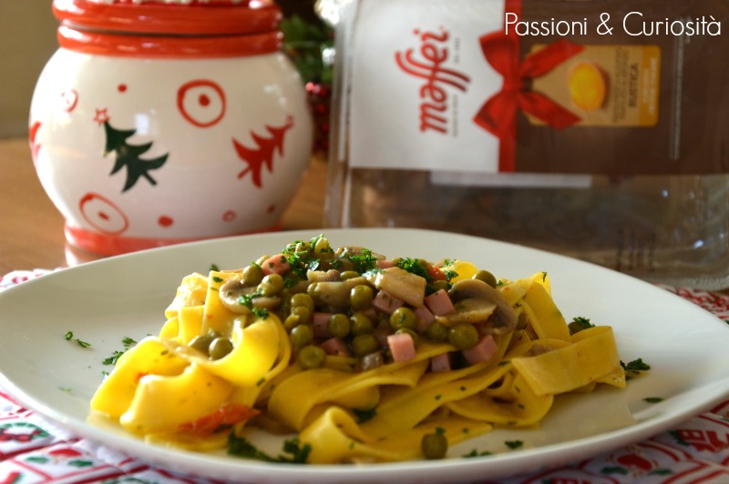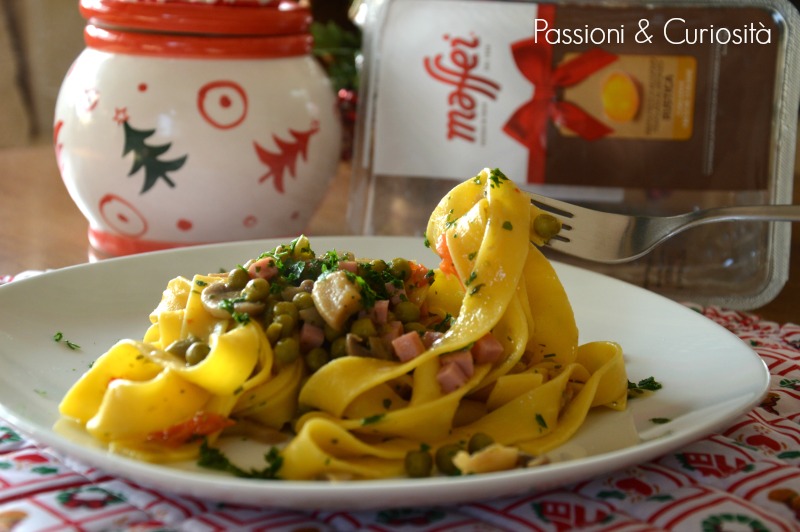 Questa volta ho voluto provare un altro formato di pasta fresca all’uovo: le pappardelle Maffei , posso affermare che il risultato è stato eccezionale, la pasta tiene la cottura in modo perfetto e si unisce in maniera gradevole al condimento, il risultato è stato soddisfacente e penso che tutti hanno gradito, visto i sorrisi di approvazione e i piatti vuoti.