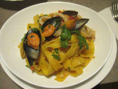 In a pot of hot water, cook the pasta. A cooking obtained drain and sauté in a pan with the mussels and squids.Serve hot.