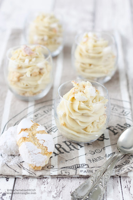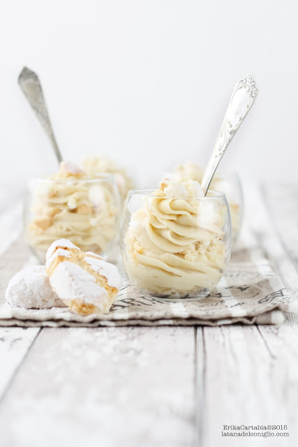 Nel frattempo ho pensato di regalarvi questa piccola delizia, nata grazie ai ricciarelli qualche mese fa, ma sempre attualissima, considerando che può essere un’idea facile e molto accattivante da proporre come dessert per Pasqua.