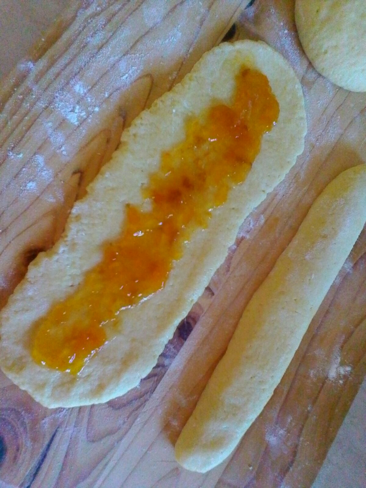 In una ciotola mescolate la farina, lo zucchero e il lievito. Aggiungete il burro freddo e sbriciolatelo con le mani fino a quando non sarà stato assorbito dalla farina. Aggiungete le uova e impastate velocemente. Ricavate dall’impasto dei filoncini, allargateli con il matterello e dopo aver messo al centro la marmellata richiudeteli.