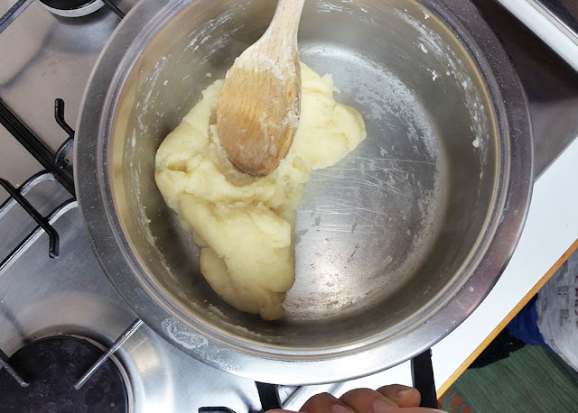 English. Meanwhile let’s make the choux pastry.