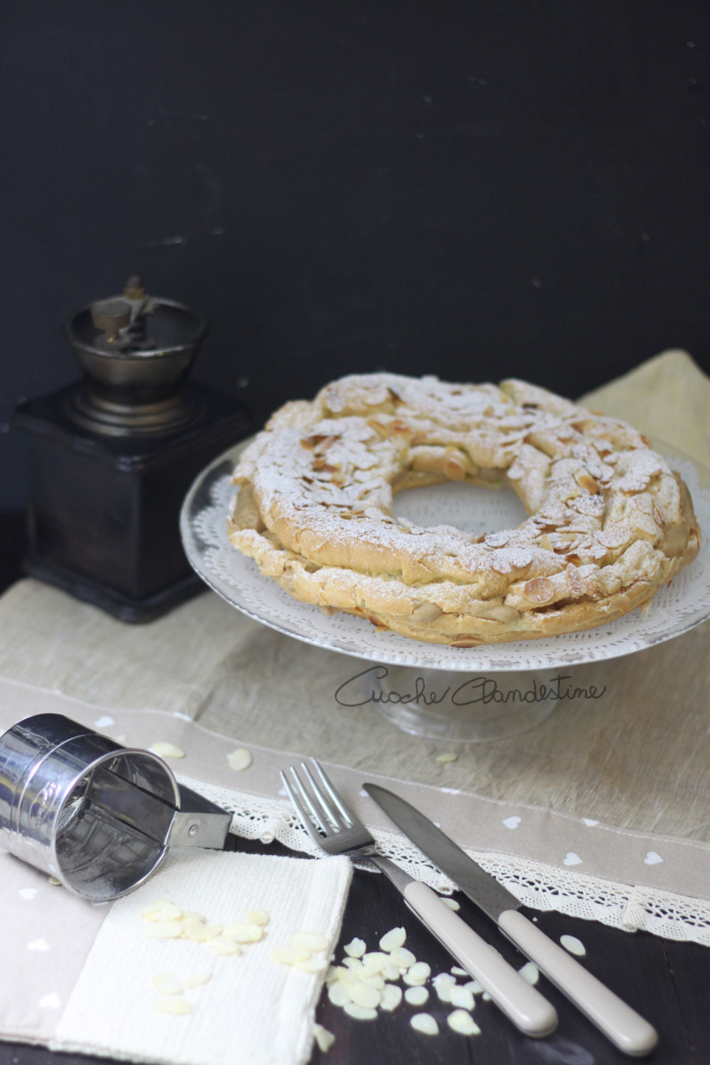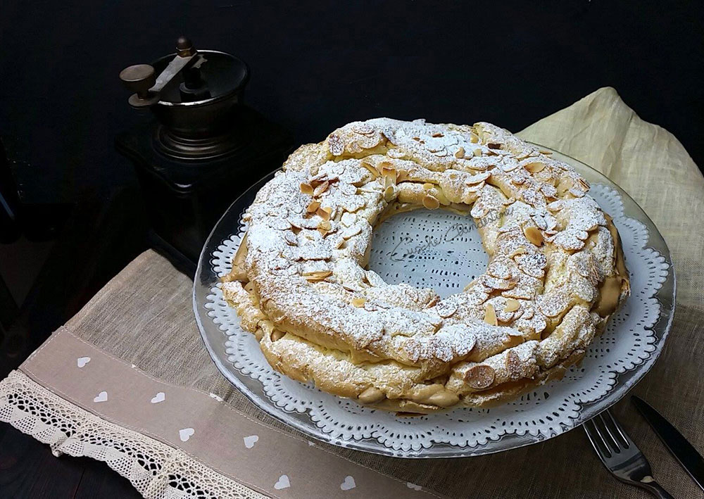 It was a french patissier who invented this cake at the end of the 1800s. He wanted to make a tribute to the cycling race that was run from Paris to Brest, in Bretagne: his shape reminds the wheel of a bycicle.