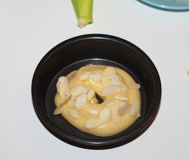 Beat the remaining egg and brush the choux pastry. Sprinkle with almonds flakes.