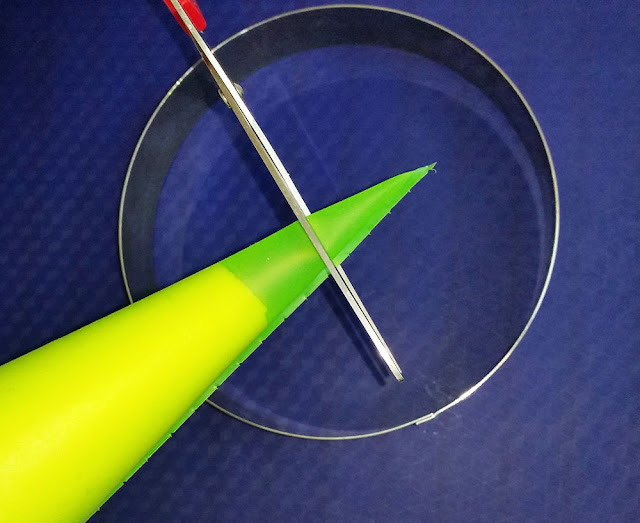 English. Pipe a circle with the piping bag. We chose a round baking tin that helped us to make well: our “wheel” had 22 cm diametre. You can also pipe your own “wheel” directly on the baking tray lined with parchment paper. Never grease the surface where you are piping your choux pastry because it needs to adhere to the tin for the correct leavening.