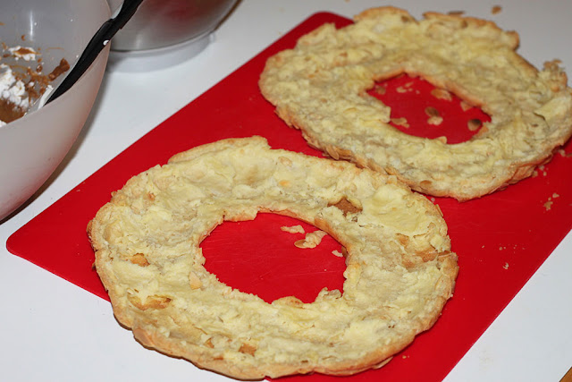 Pipe the first circle, then another one around the outside of the first. Finally, pipe another circle of pastry over the join where the two circles touch.