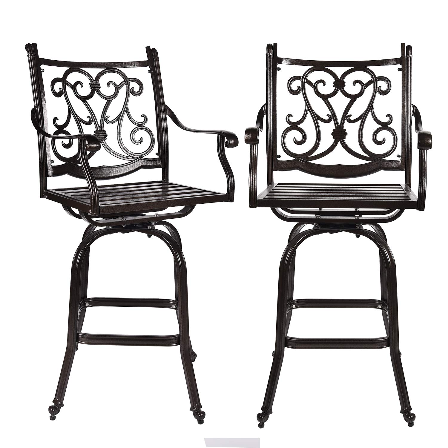 Set Of 2 Outdoor Cast Aluminum Patio Chair 360 Degree Swivel Bar Stool Patio Furniture Antique Copper Design