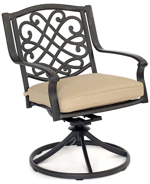 Macys Closeout Grove Hill Outdoor Cast Aluminum 9 Pc Dining Set 60 Square Dining Table 4 Dining Chairs And 4 Swivel From Macys Real Simple
