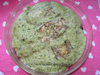 In una tortiera distribuire le melanzane. Aggiungere qualche cucchiaiata di besciamella procedere a strati fino ad esaurimento degli ingredienti. Spolverizzare con lievito alimentare e portare in tavola.