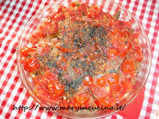 300 gr ceci neri, 2 melanzane, 10-15 pomodorini, cipolla, sale integrale, olio extravergine d’oliva, basilico essiccato tritato.