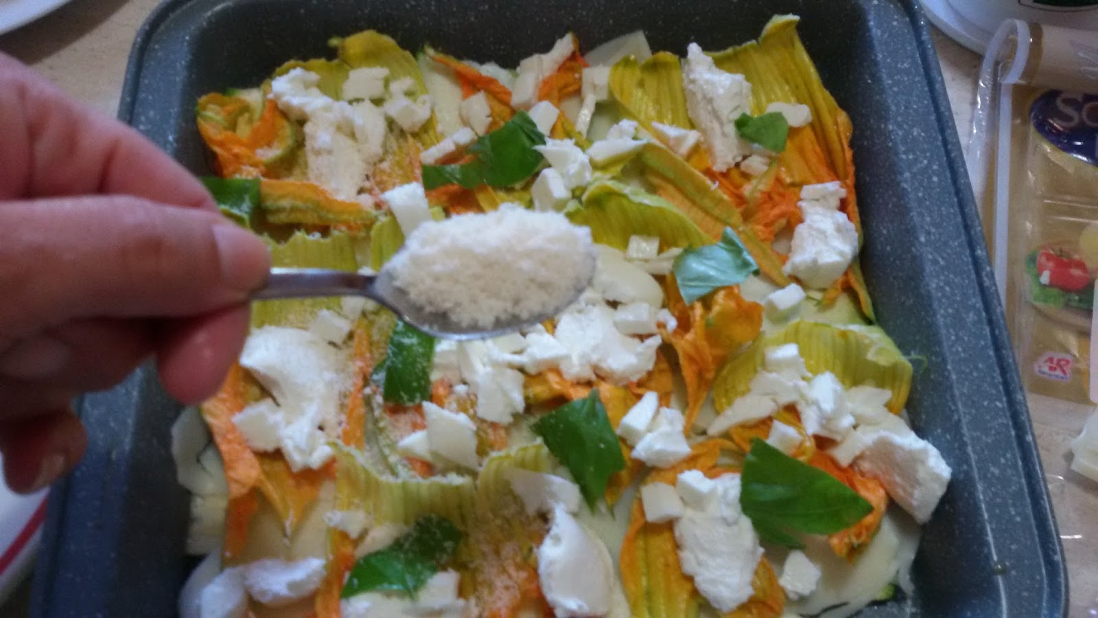 Quando ho visto la foto che Lucia ha messo sul gruppo FB è stato amore a prima vista e l’ho subito rifatta la PARMIGIANA DI FIORI DI ZUCCA, anche se con qualche modifica perchè come sapete sono molto golosa ..aahahh, ma Lucia mi conosce e sa bene che è un mio vizietto vero?