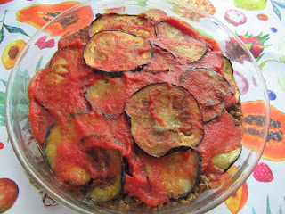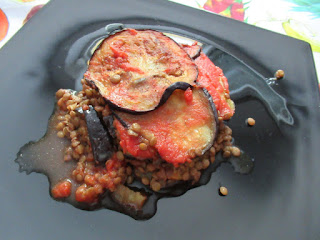 Lessare le lenticchie, salarle ed eliminare l’acqua di cottura. Affettare le melanzane e distribuirle in una ciotola con una spolverata di sale, lasciarle riposare per 30 minuti. Risciacquarle sotto l’acqua corrente, strizzarle e friggerle. Versare in una pirofila un po’ di passata, distribuirvi le melanzane ed aggiungere qualche cucchiaiata di lenticchie. Proseguire fino ad esaurimento degli ingredienti lasciando per l’ultimo strato un po’ di passata in più in modo da coprire bene il tutto. Cuocere in forno a 170° per 15 minuti.
