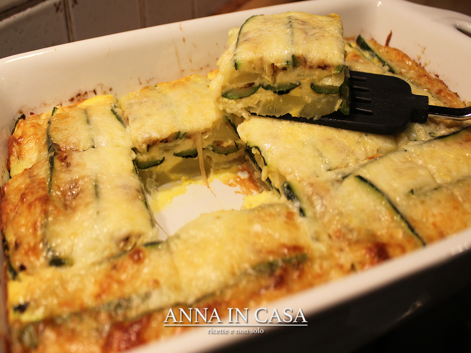 Non una semplice parmigiana di patate e zucchine, ma una gustosa torta di verdure ricca di mozzarella, parmigiano e uova.